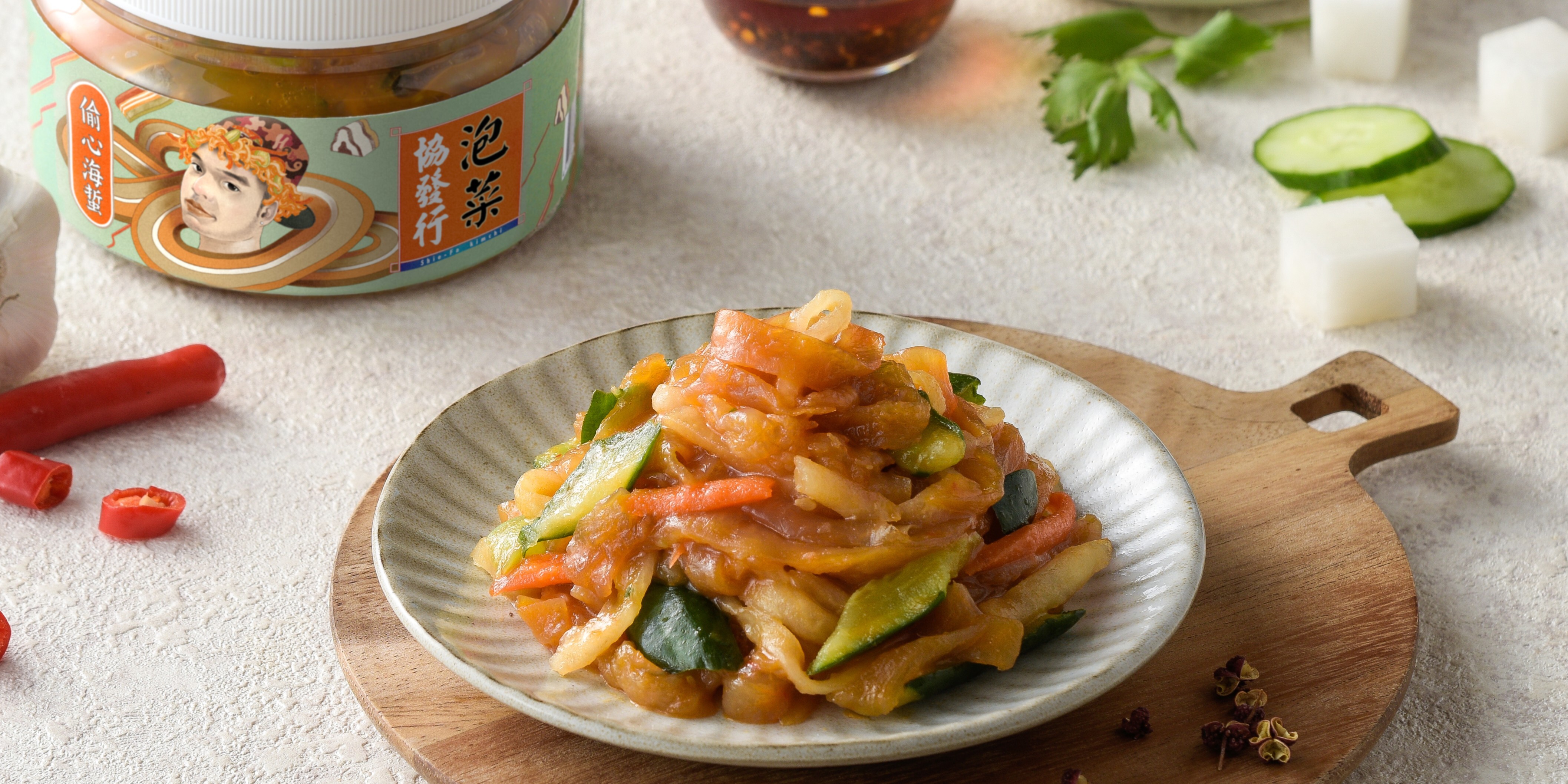 協發行泡菜的【偷心海蜇】選用新鮮海蜇,經過手工處理後保留最誘人的Q彈嚼勁。拌入台式特製酸辣醬汁,帶點蒜香與微微辣感,每一口都像是台灣味的縮影。開瓶即食,滑嫩中帶勁,清爽卻不平凡,讓人忍不住一口接一口~