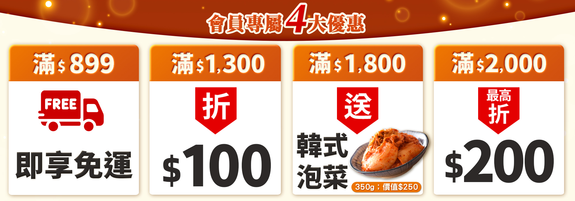 全店,★滿$𝟏,𝟖𝟎𝟎送【韓式泡菜(𝟑𝟓𝟎g/瓶)】(價值$𝟐𝟓𝟎元)
