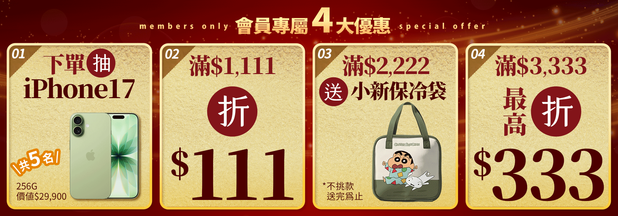 全店,★滿$𝟏,𝟏𝟏𝟏折$𝟏𝟏𝟏元(會員專屬)