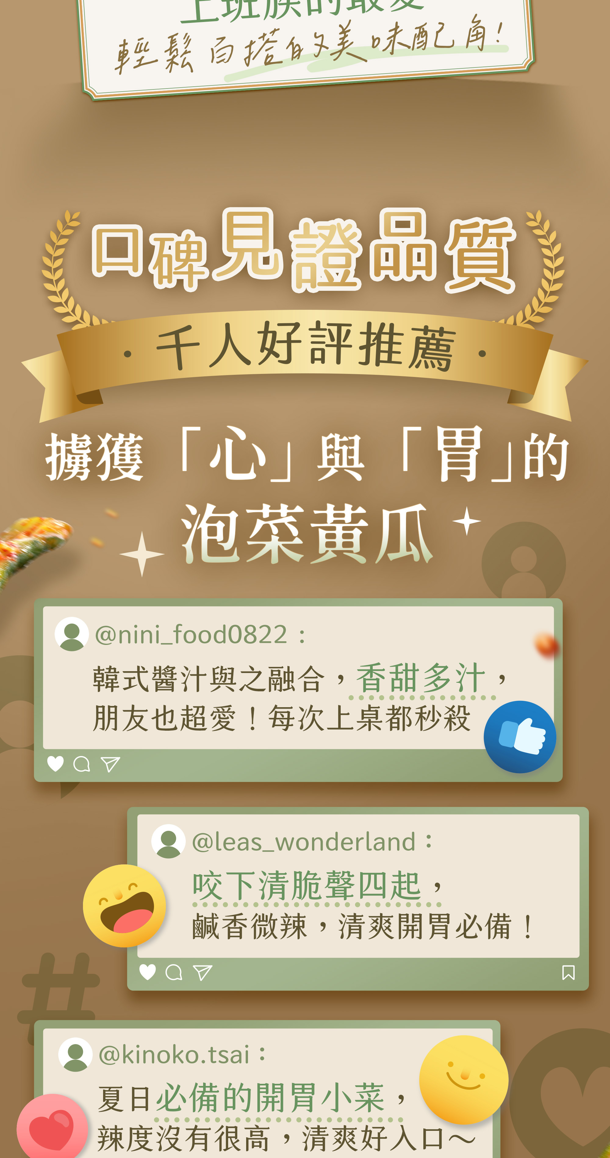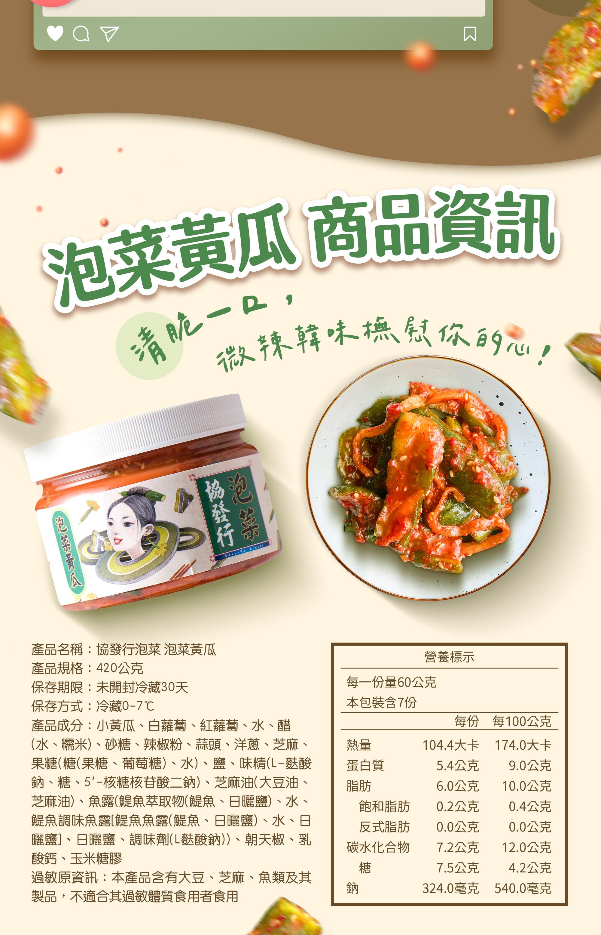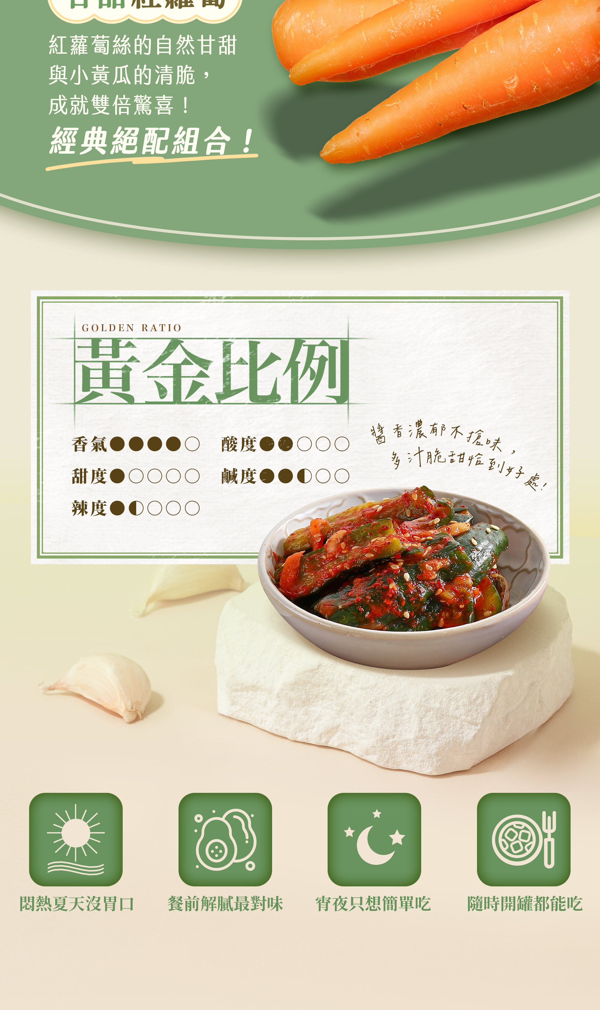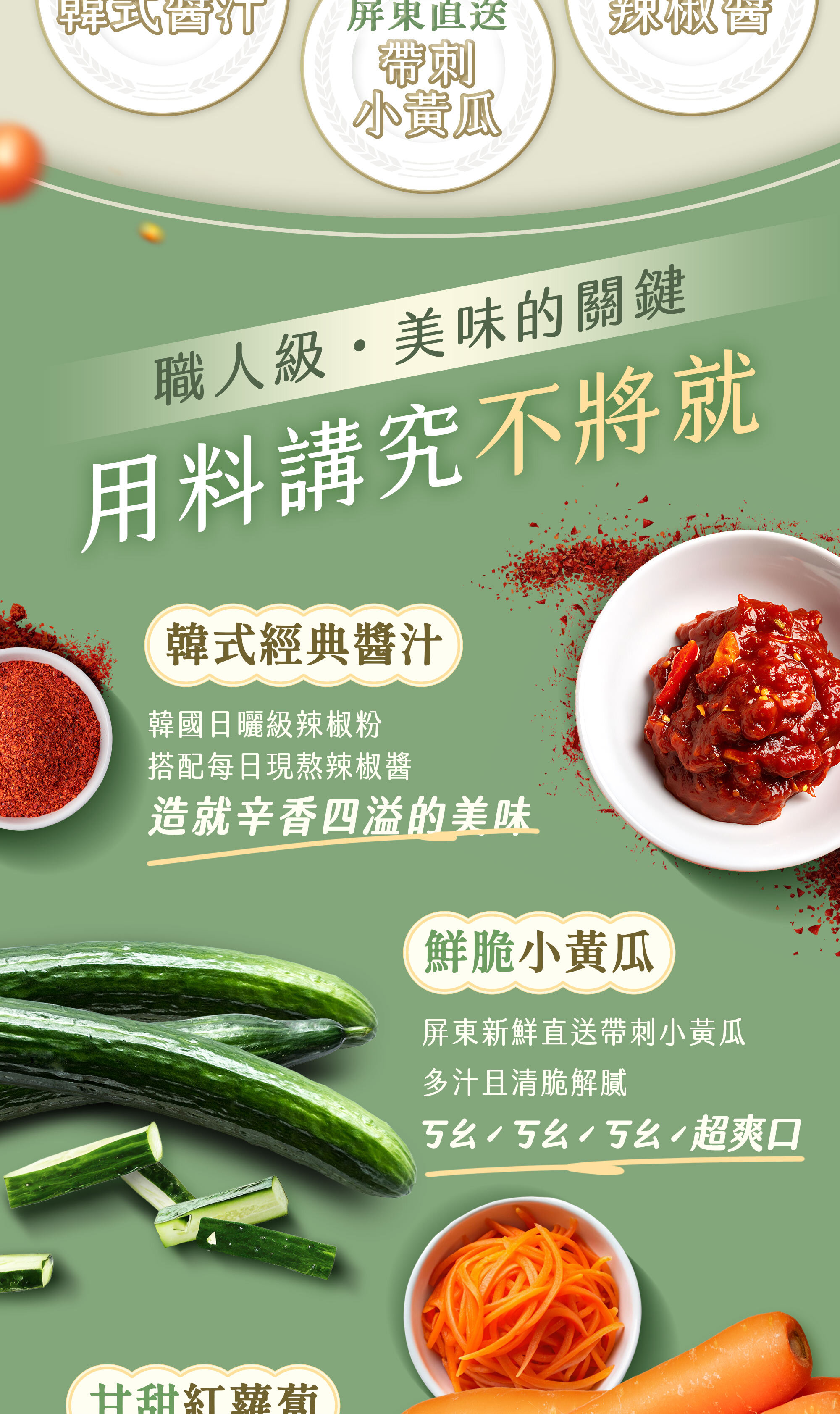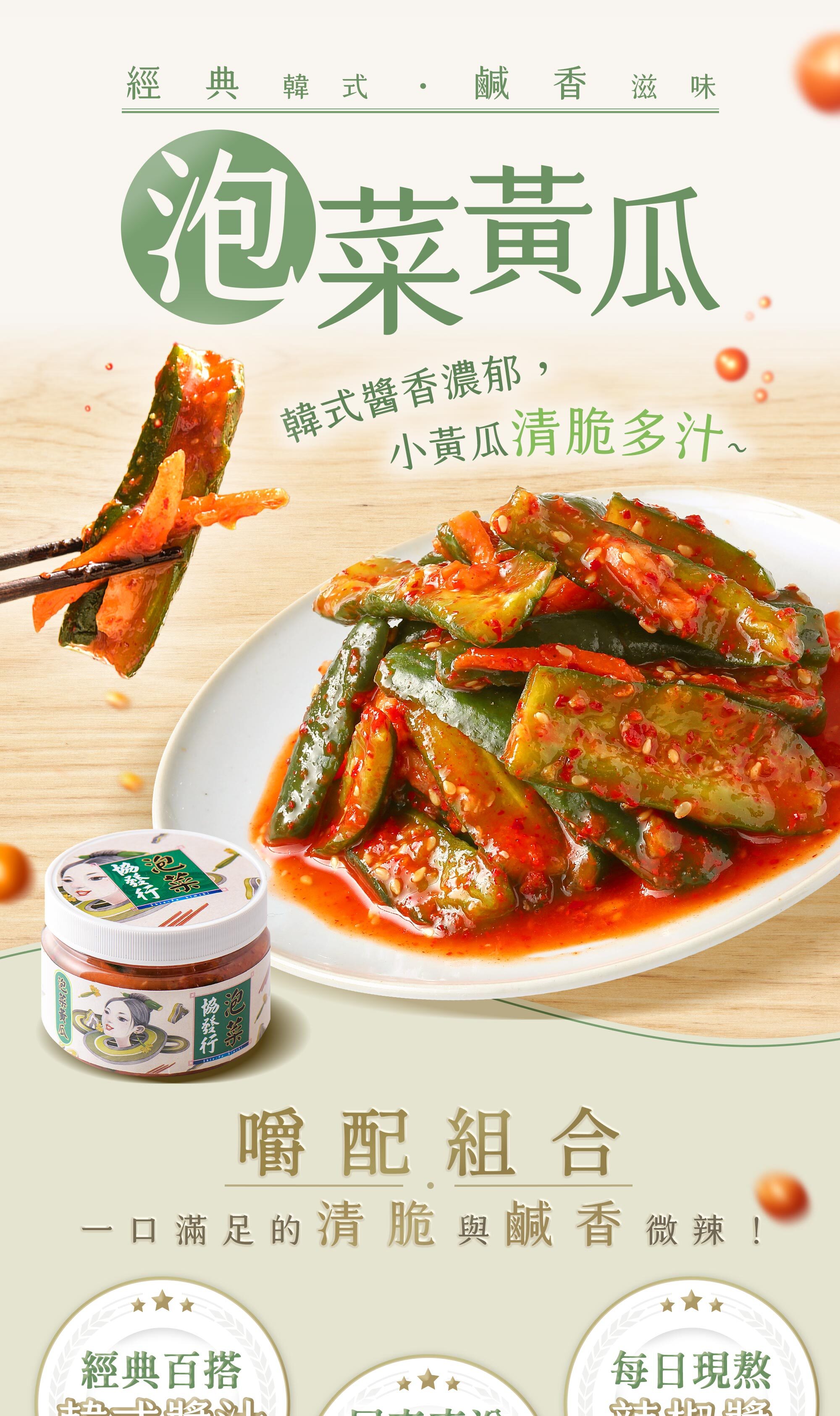· 鮮脆小黃瓜,以滾刀式切法保留水分及清脆口感