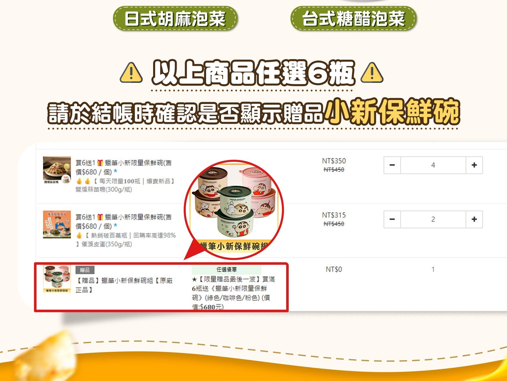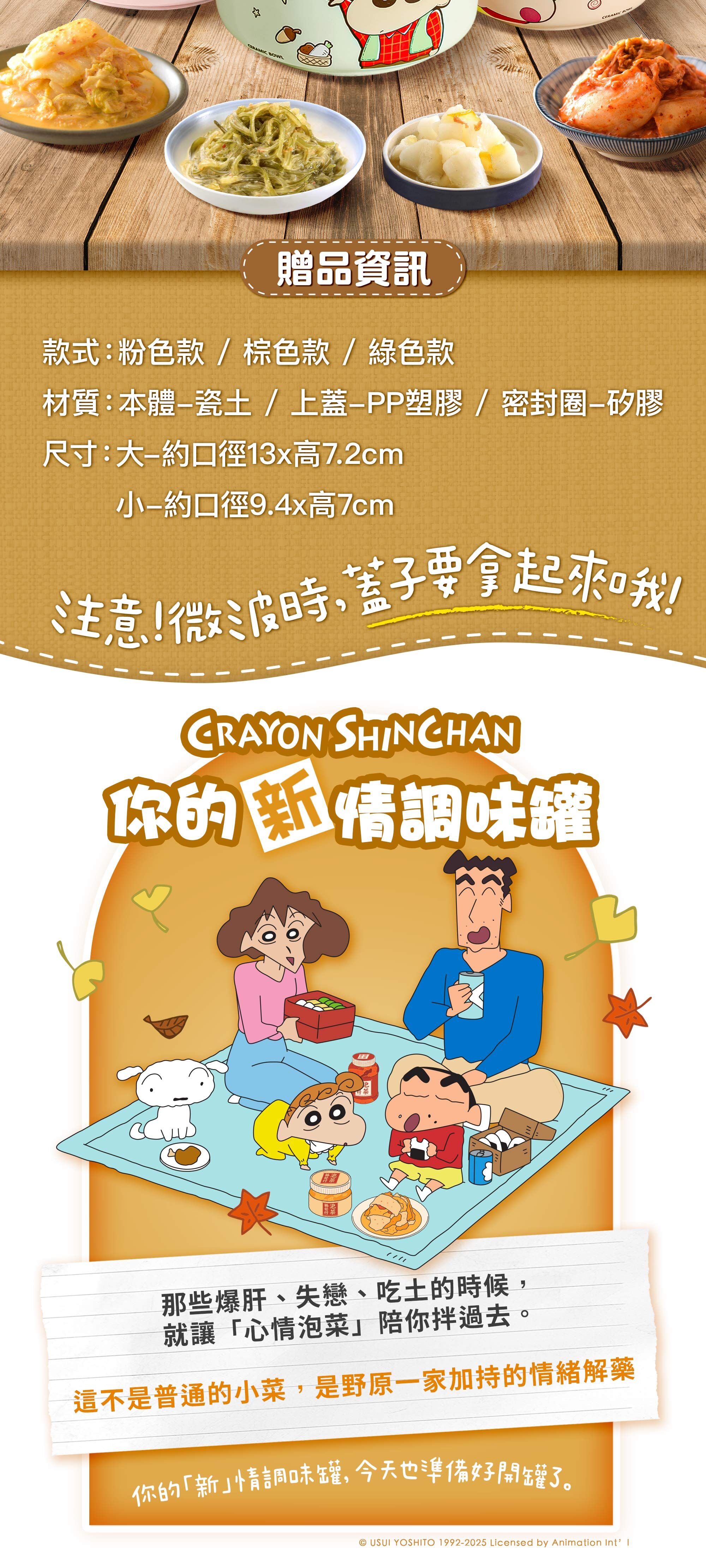 至2025-11-22T16:00:00.000+00:00截止 指定商品,★【送完不補貨】買滿𝟔瓶送《蠟筆小新陶瓷保鮮碗》(綠色/咖啡色/粉色) (贈品原價:$𝟭,𝟮𝟬𝟬元)