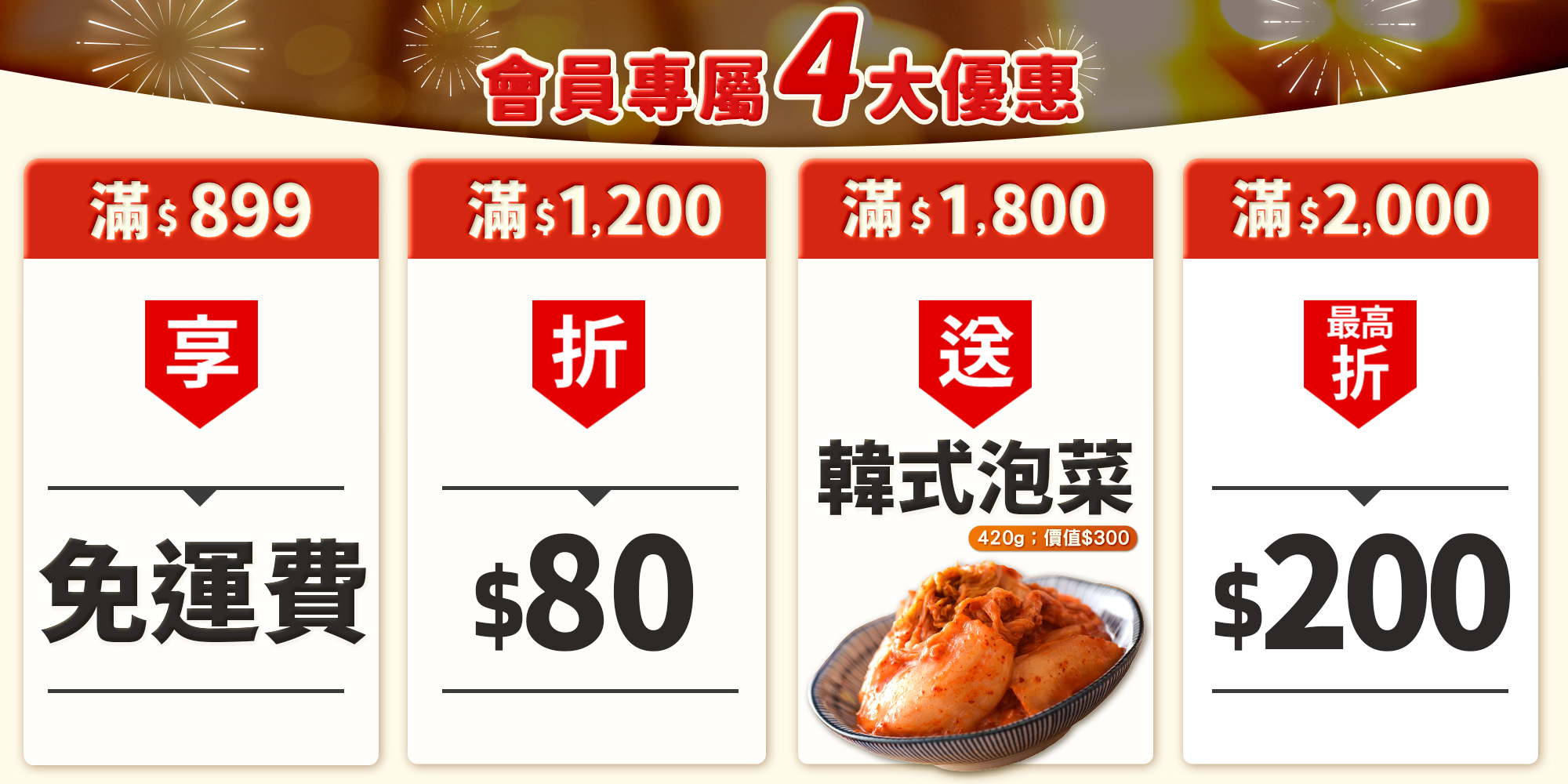 全店,★滿$𝟏,𝟖𝟎𝟎送【韓式泡菜(𝟒𝟐𝟎g/瓶,價值$𝟑𝟎𝟎元)】