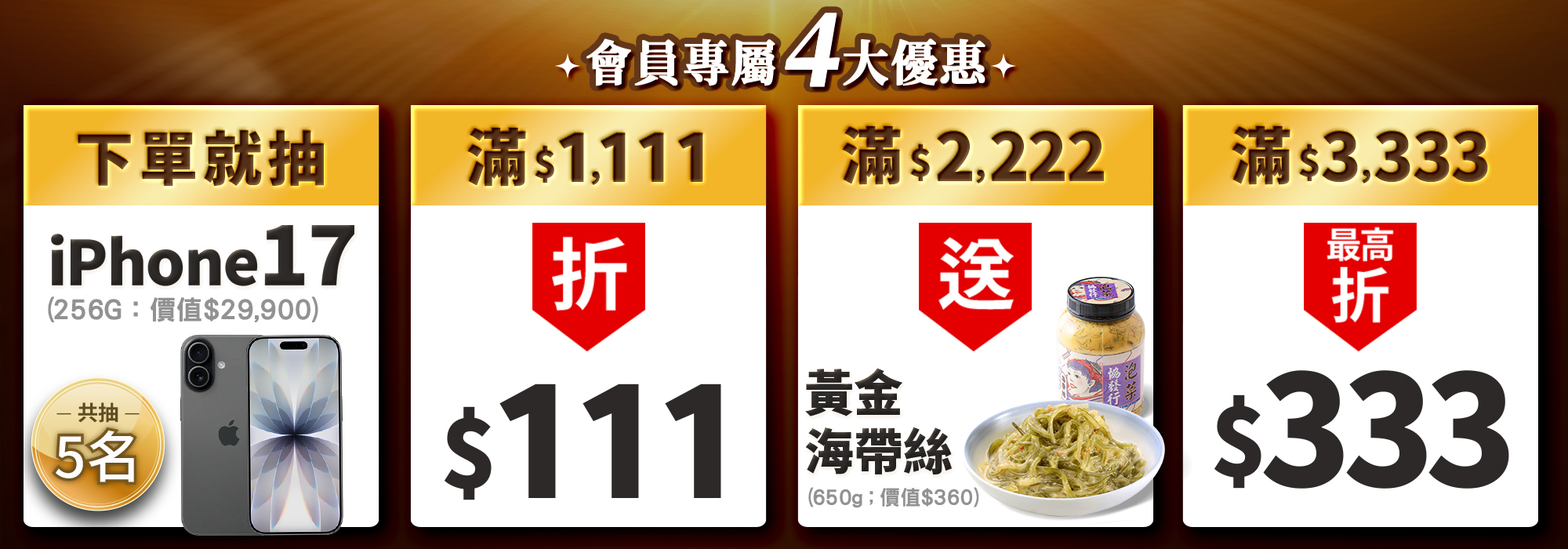 全店,★滿$𝟏,𝟑𝟎𝟎折$𝟏𝟎𝟎元【會員折扣】