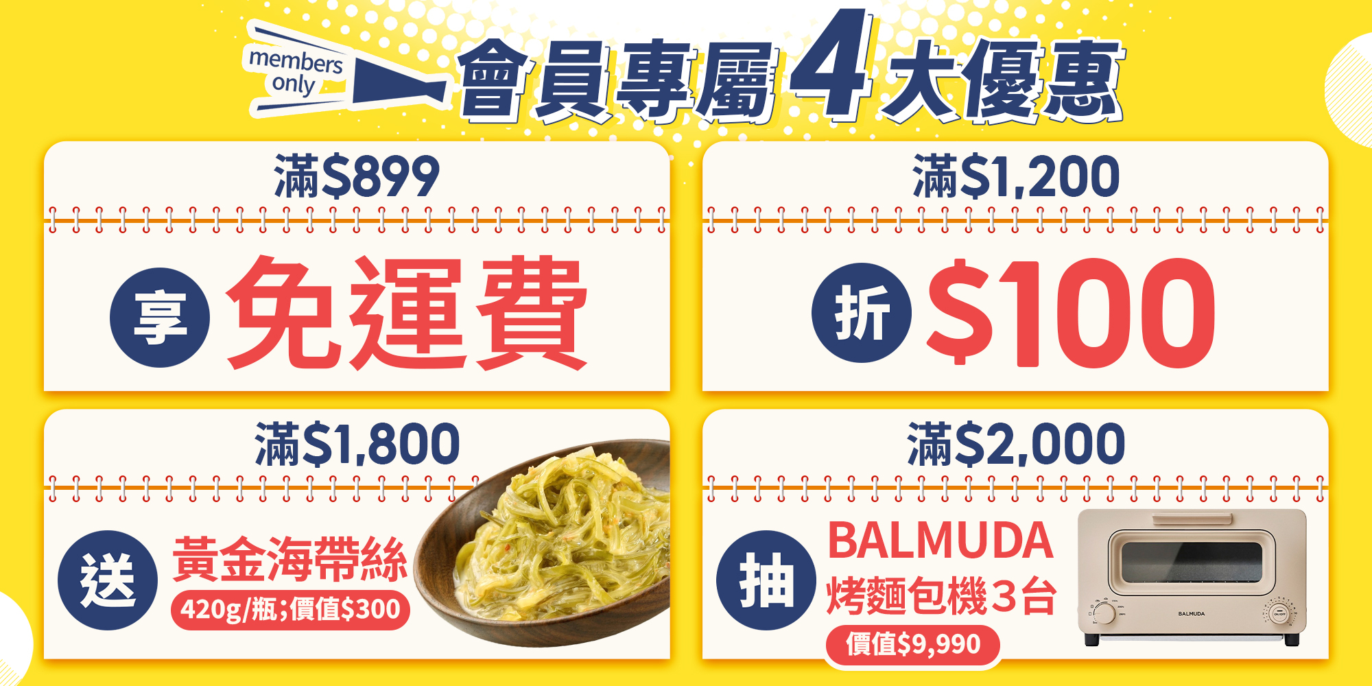 全店,★滿$𝟐,𝟎𝟎𝟎抽【 BALMUDA烤麵包機(市價:𝟗,𝟗𝟗𝟎元/台 】